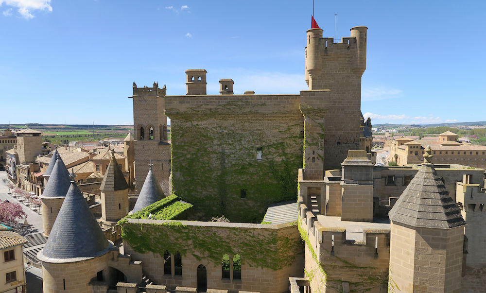 Oliten rakentaminen aloitettiin 1200-luvulla. Linna tunnetaan paremmin nimellä Navarran kuninkaiden Palatsi. Linnan olemus on enemmän asumuksellinen kuin puolustuksellinen. Linnassa on 4 korkeata tornia, joista avautuu erilainen näkymä linnan eri osiin sekä kaupunkiin ja viinitarjohjen täyttämään maisemaan. Navarran kuningas Carlos III el Noble eli linnassa 1300-luvulla ylellistä elämää. Hän oli tuonut sinne eksoottisia eläimiä, kuten kirahveja ja leijonia. Eräs saksalainen matkailija kirjoitti päiväkirjaansa 1500-luvulla: ”Mikään kuningas ei voi kuvitella elävänsä kauniimmassa linnassa kuin tässä, jossa on niin paljon kultaisia huoneita”.