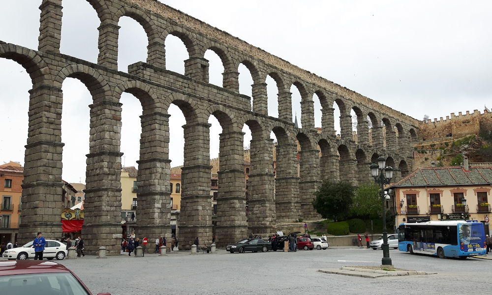 Jatkoimme Segoviaan. Siellä on kaksi huippunähtävyyttä; roomalainen akvedukti ja Alcazar-linna. Linna sijoittuu Espanjan linnojen joukossa sijalle 2, Granadan jälkeen. Lähellä on Camping El Acueducto ja myös matkaparkki. Akvedukti rakennettiin noin vuonna 50 ja se toi vettä 16 kilometrin päästä. Alcazarin linnaan kannattaa mennä taksilla, ehdoton käyntikohde!