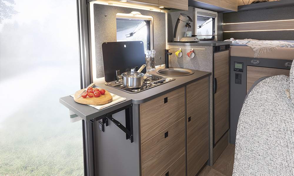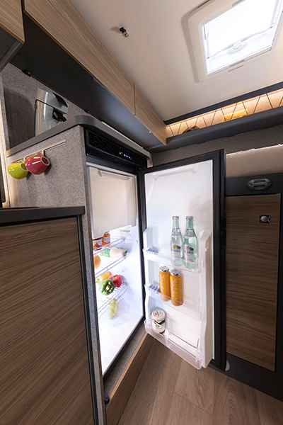 T16:ssa on 83 litran kompressorijääkaappi, 115-litrainen raikasvesisäiliö ja 90 litran harmaavesisäiliö. Mallissa on vakiona 150 Ah:n litiumakku.