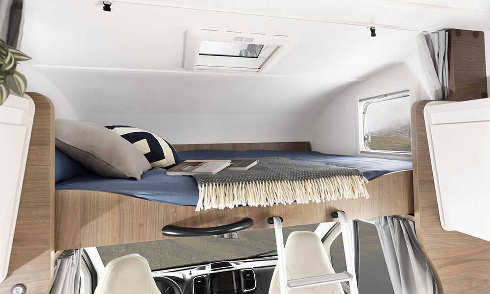 Toiset kaksi nukkumispaikkaa ovat ohjaamon yläpuolella olevassa kiinteässä alkovivuoteessa, jonka koko on 2,11 × 1,59 metriä.