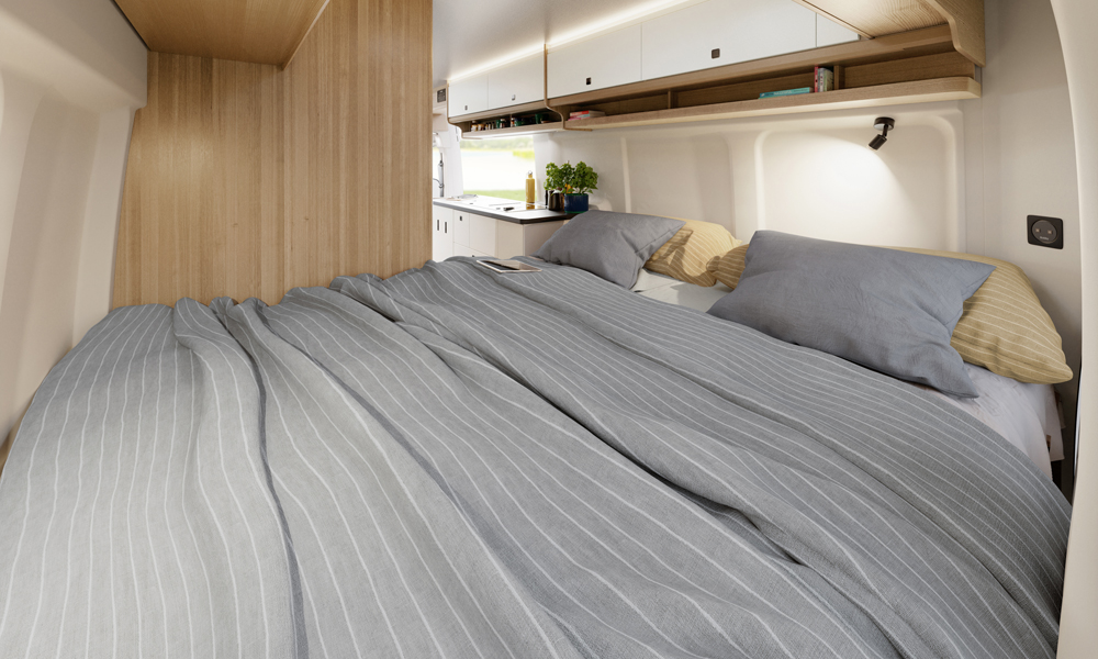 Nostokaton sekä takaosassa olevan poikittaisen parivuoteen ansiosta käytettävissä on yhteensä neljä nukkumapaikkaa, joten 5,99 metriä pitkä Ontour Van 600 FTR soveltuu myös perheille.