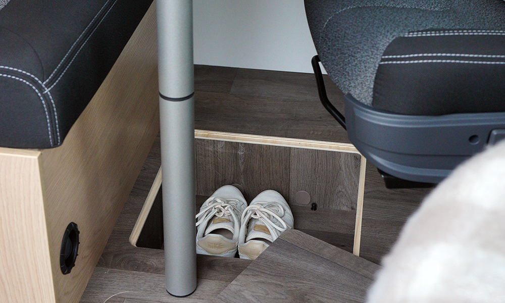 Yksinkertainen suihku tulee vasta lisävarusteena Pure-paketissa, samoin istuinryhmästä saatava ylimääräinen vuode.
