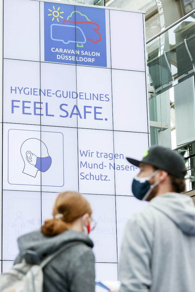 Menneenä viikonloppuna Düsseldorfissa käynnistyneillä Caravan Salon -messuilla otettiin käyttöön järeät otteet koronatartuntojen ehkäisemiseksi.