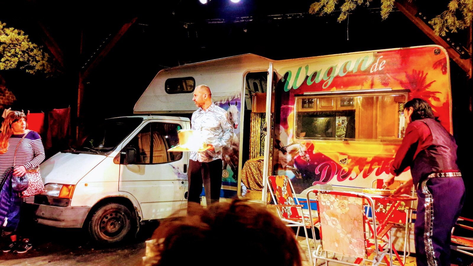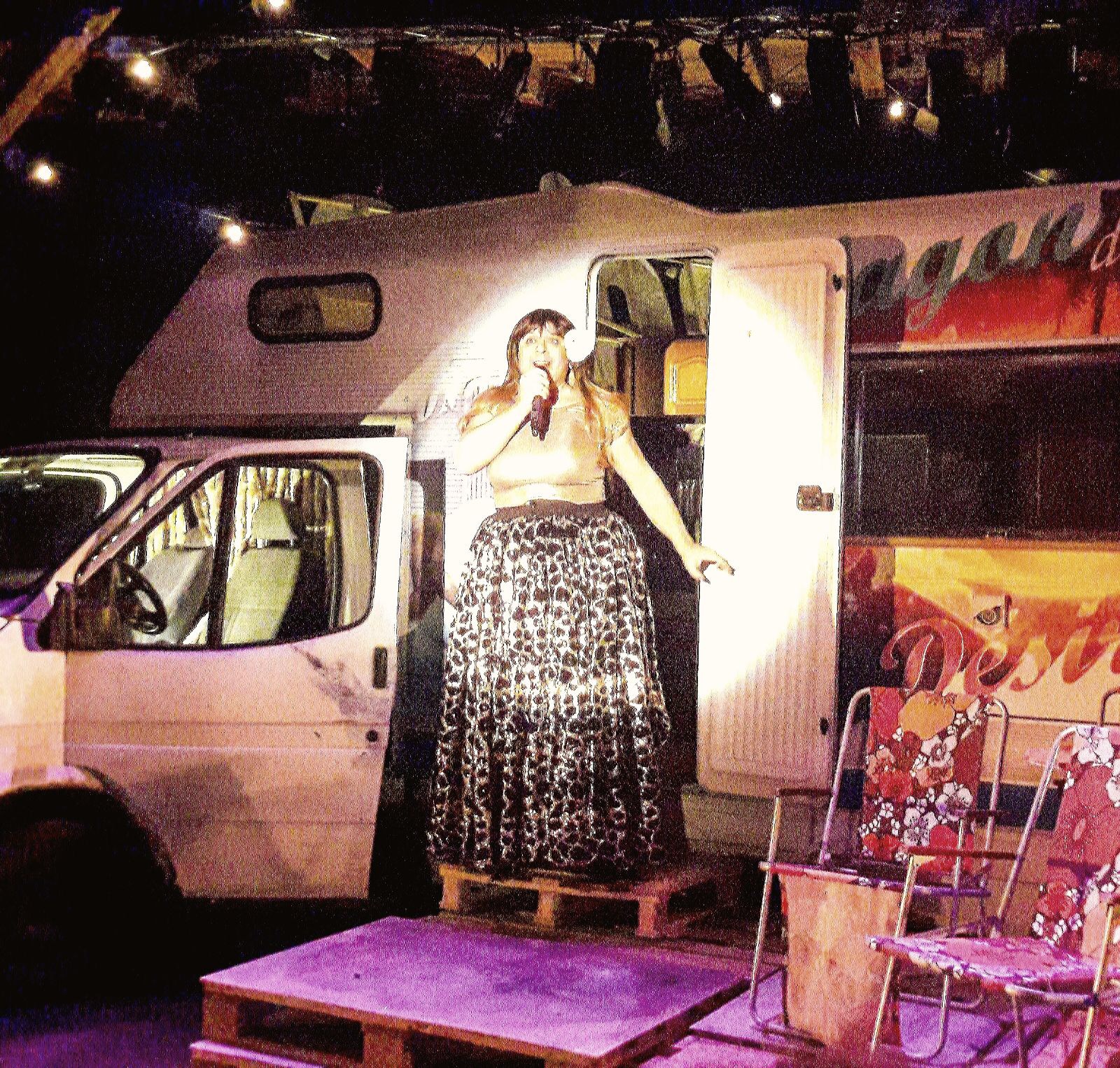 – Tapahtumapaikka on Porin Isomäen leirintäalue, joka näyttäytyy eristäytyneenä, lähes myyttisenä joutomaana. Lavastuksena toimiva oikea asuntoauto tulee vaikuttavasti liki katsojia. Autenttinen äänimaisema ja henkilöiden ajoittainen sijoittuminen katsomon taakse luovat vahvan vaikutelman – yleisö tuntee olevansa keskellä tapahtumapaikkaa, lehti kirjoittaa.