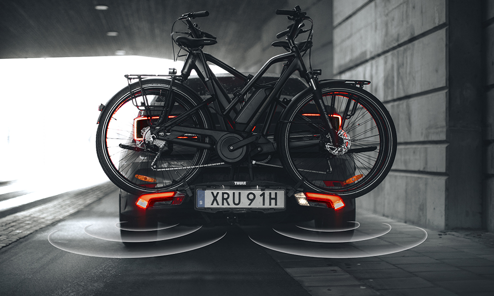Tällaiset tilanteet mielessään Thule on suunnitellut Epos-pyörätelinemalliin perustuvan uuden Epos ParkSecure -version, joka sisältää pysäköintitutkat suoraan telineeseen integroituna.